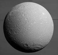 Enceladus was shown to be a weird little moon. This world, which was considered dead and inactive prior to the mission, has geysers which release water vapor into the air and is the source for Saturn’s vast E-ring. It is hypothesized that there might be an ocean of liquid water beneath its icy surface. Enceladus is super reflective; it has a really high surface albedo due to its reflective surface, making it very bright.